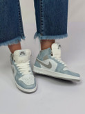 این کتانی ساق بلند، با الهام از مدل نمادین ایر جردن ۱، یک انتخاب کلاسیک برای عاشقان استریت استایل است. پالت رنگی آن، ترکیبی از آبی آسمانی/پاستلی (Dusty Blue) و خاکستری روشن در کنار زمینه سفید عاجی است که ظاهری منحصر به فرد و آرامشبخش به آن بخشیده است. این کفش با حفظ اصالت مدلهای بسکتبالی، راحتی و استایلی مطلوب را برای استفاده روزانه فراهم میکند و به راحتی با شلوار جین، شلوار بگ و حتی لباسهای اسپرت ست میشود.