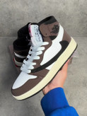 طرح رنگی (Colorway) جذاب: این کفش با ترکیب رنگهای قهوهای موکا/شکلاتی، سفید شیری و مشکی متضاد، یک ظاهر گرم و در عین حال قدرتمند ایجاد کرده است. رنگبندی دوام و تطبیقپذیری بالایی در ست کردن با لباسهای مختلف دارد.